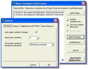 El programa te permite cargar una imagen (con soporte para los formatos más populares) y ver hasta cinco posibles variaciones simultáneamente, para poder comparar y quedarte con la que más se ajuste a tus necesidades por aspecto y tamaño final. Esta imagen puede no sólo provenir de un fichero gráfico, sino que también puedes obtenerla mediante escáner o capturarla en tu pantalla con el propio WebGraphics Optimizer. También tienes la posibilidad de procesar las fotos una a una, o en masa.